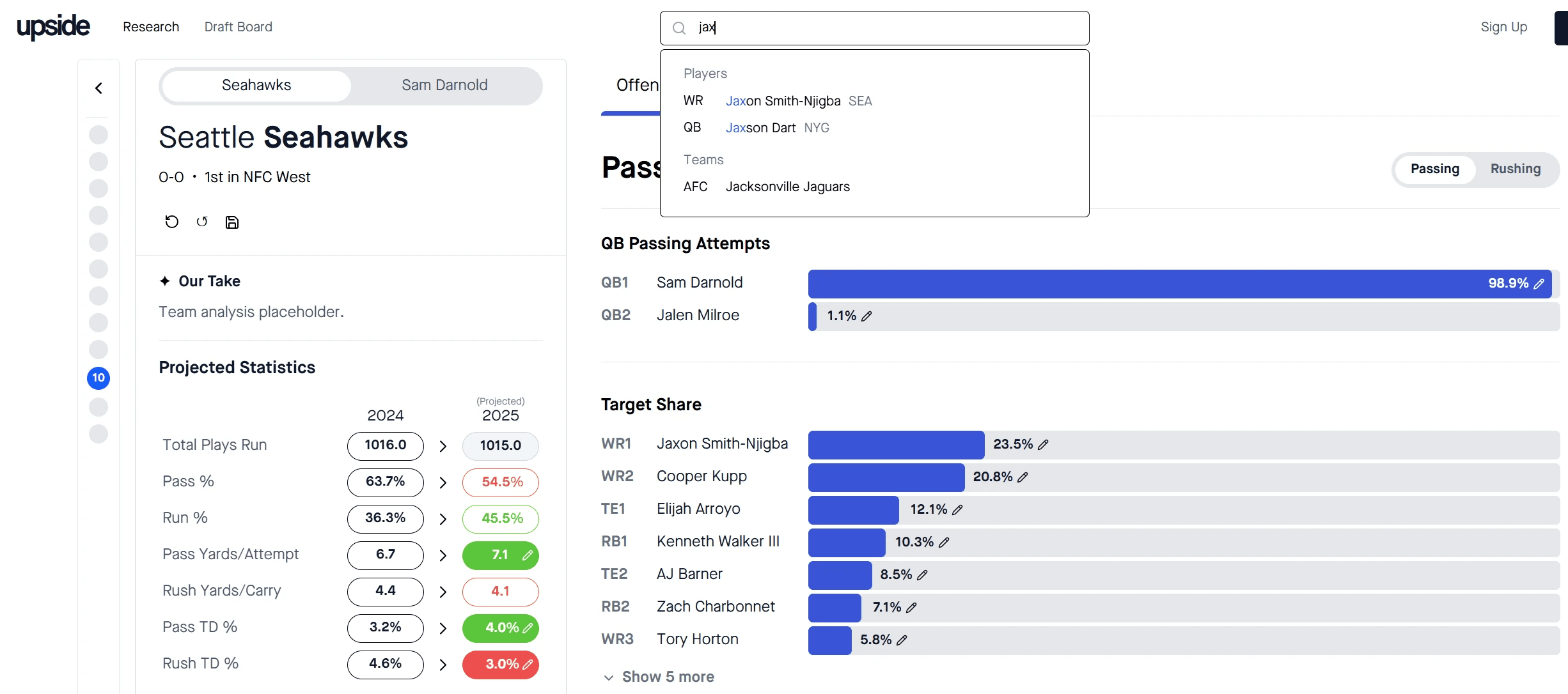 Founding designer and developer, Designed web app that makes advanced draft analytics accessible by breaking down ESPN projections into tangible stats users can build their own predictions from.